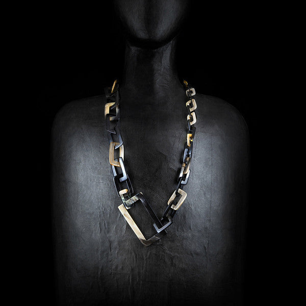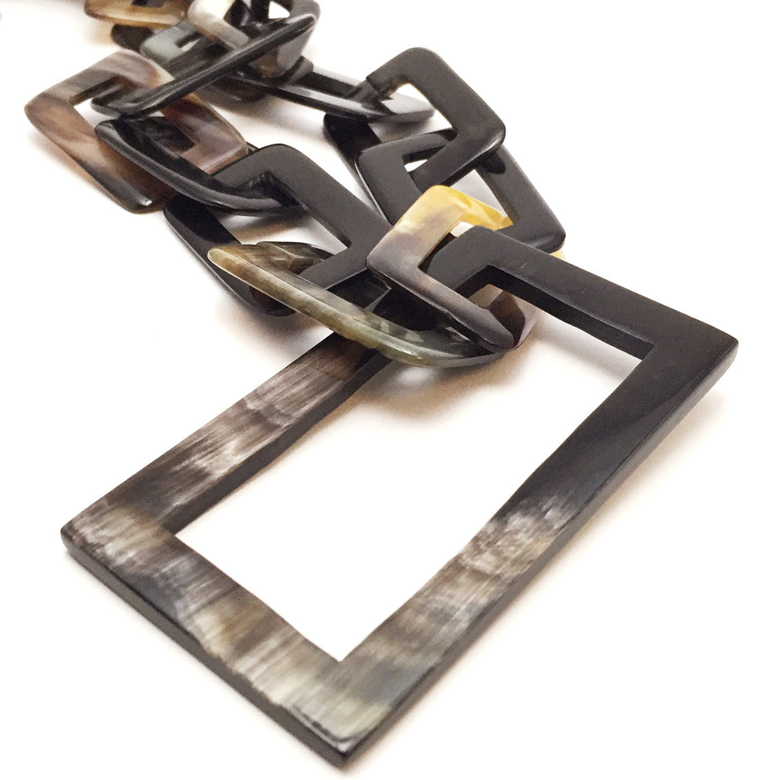 Ein Eyecatcher unsere Horn Halsketten wie diese in rechteckiger form gefertigt mit einem großen rechteckigem Element.