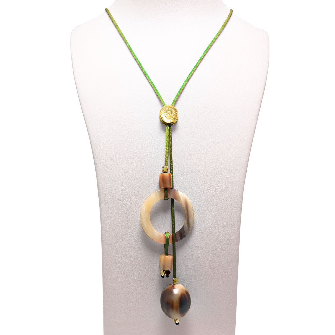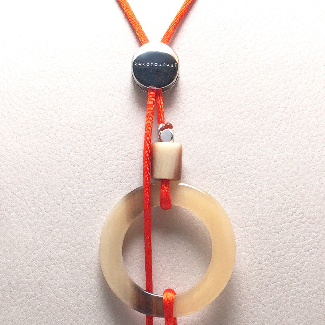 Zebu horn necklace with satin rope